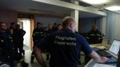 Nach der obligaten Sicherheitskontrolle von Fahrzeugen und Mannschaft folgten die Kraftfahrer dem Einsatzleitbus der Flughafenfeuerwehr zur Feuerwache Süd. Die Flughafenfeuerwehr München betreibt zwei Feuerwachen, um die ICAO-Richtlinie (International Civil Aviation Organization) für Flughäfen der höchsten Kategorie 10 zu erfüllen, nämlich jedem Punkt des Vorfeldes und der beiden Start- und Landebahnen innerhalb von 180 Sekunden zu erreichen.